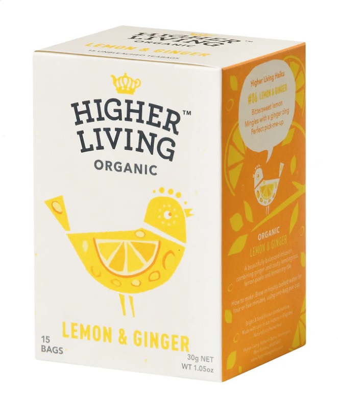 Higher Living Organic Lemon & Ginger - Krásně vyvážený nálev s pikantní chutí citrónu a zázvoru.