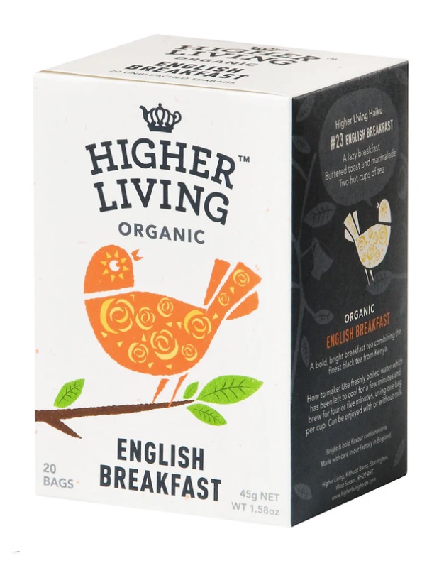 Higher Living Organic English Breakfast - Klasický černý čaj v bio kvalitě, který se tradičně podává v době snídaně.